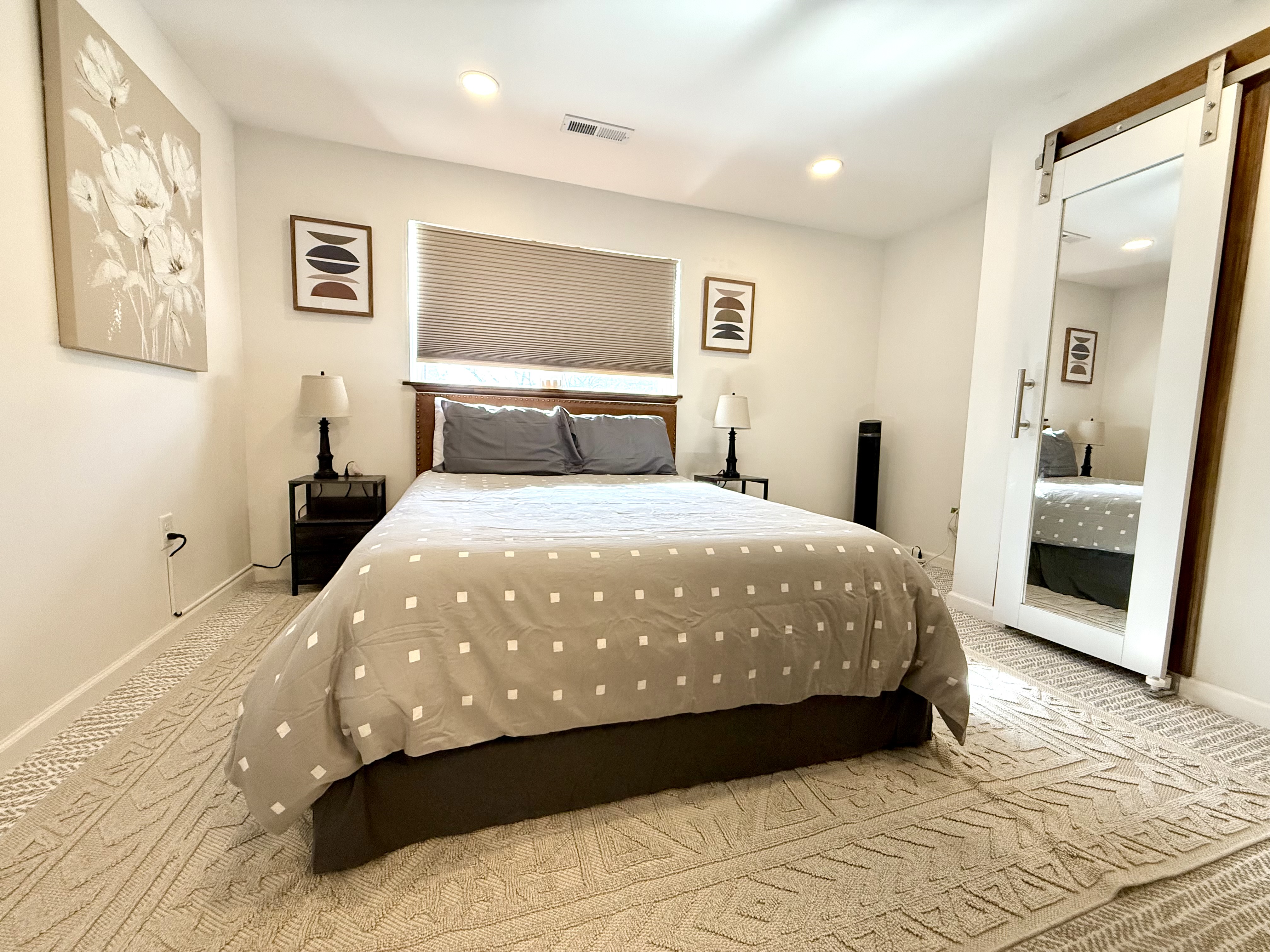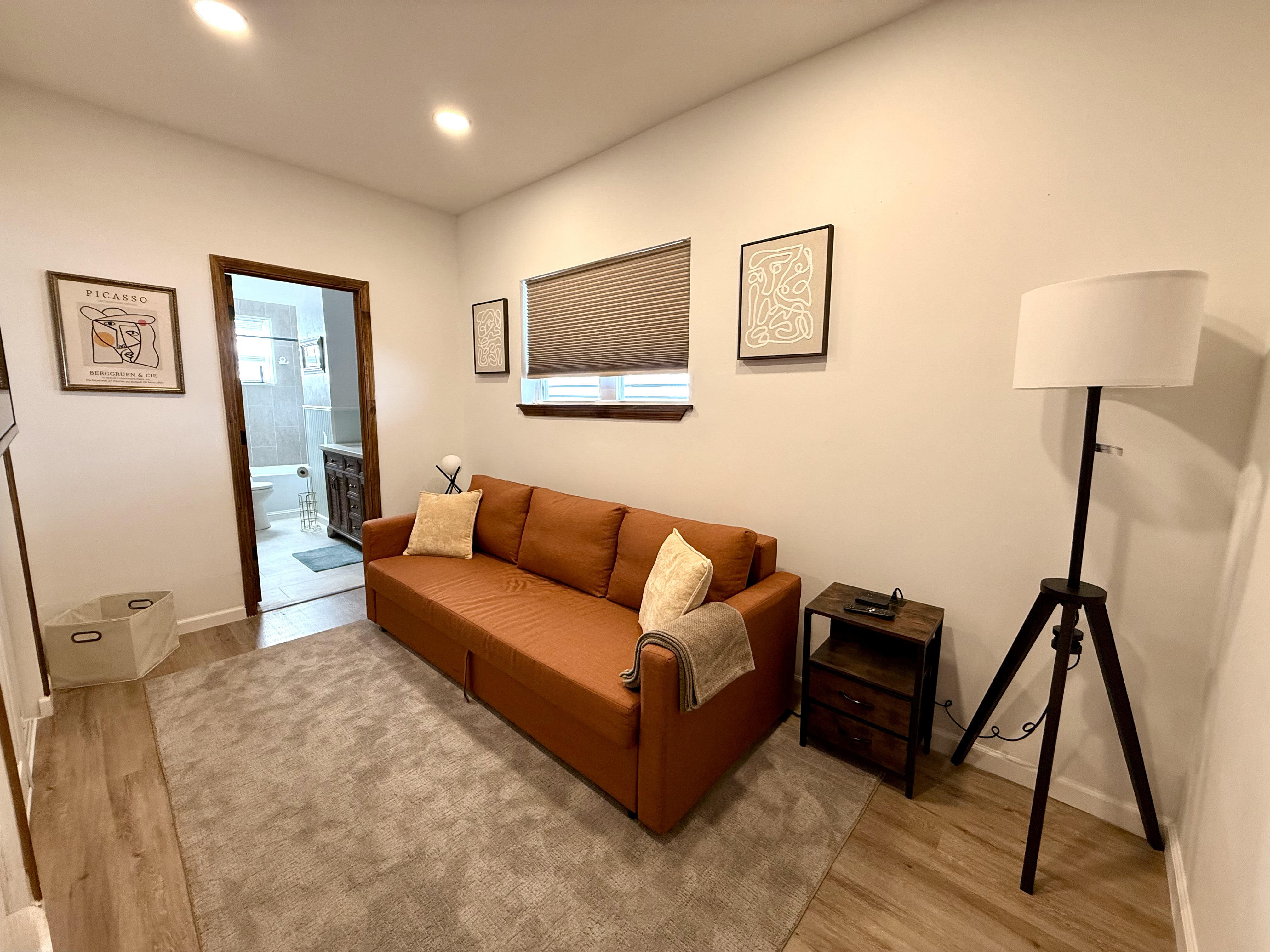 This is a quiet private residential home created for guests who value cleanliness, comfort and a calm environment. The home includes 3 bedrooms 2 full bathrooms a modern kitchen comfortable living room washer and dryer high speed WiFi and dedicated work areas. No parties no events. Guests have private access to the entire home based on registered guest count including living room kitchen bathrooms and bedrooms. For reservations of 4 guests or fewer access includes 2 bedrooms. For reservations of 5 guests the third bedroom is unlocked and prepared. Exterior patio entry and parking areas are available for guest use. Exterior security cameras are in use.